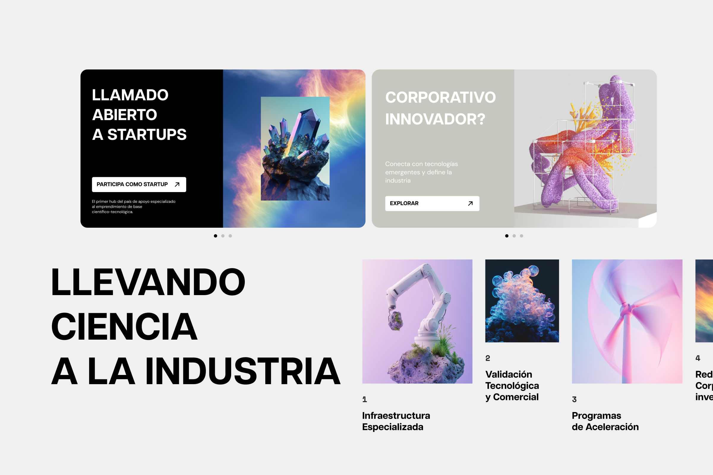 El reto consistió en proyectar una identidad digital que reflejara el rigor de un entorno de laboratorios especializados e infraestructura de vanguardia. Buscamos diseñar una experiencia de usuario que facilitara el acceso a sus programas de apoyo y servicios de validación, transformando la densidad técnica del proyecto en un lenguaje visual nítido, sofisticado y funcional, alineado con los estándares globales de innovación.